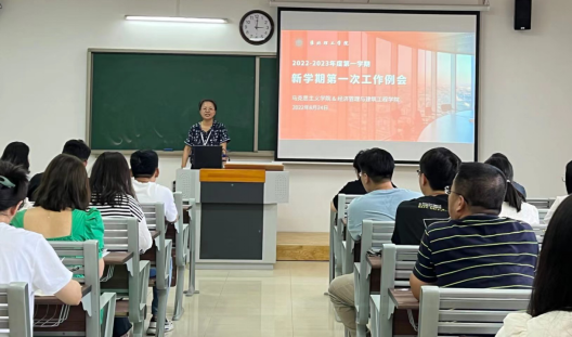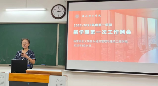 为确保新学期各项教学安排有效落实,扎实推进下半年教学重点工作,8月24日下午3点,经济管理与建筑工程学院和马克思主义学院全体教师在一教215召开开学工作会议,两院全体教职工参加会议,吴玲院长主持本次会议。会议共分为四个环节有序进行。