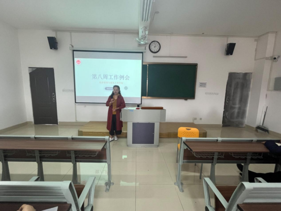 随后吴玲对下周的工作进行重点布置:一要认真做好青年教师教学比赛的后期的辅导工作,力争获得优异的成绩;二是要认真进行2024届毕业生毕业论文的指导,希望在学生离校前能做出初稿;三是做好2024届学生本学期的教学和考核工作,按时完成课程及出卷工作,保证试卷质量;四是要认真审核职称评定材料,查缺补漏,按学校要求完成;五是要积极准备2023年质量工程项目申报工作,要求教师高度重视、全员申报;六是要积极进行大学生技能大赛的指导工作,进行专项的指导辅导,要求每位老师都能参与其中。