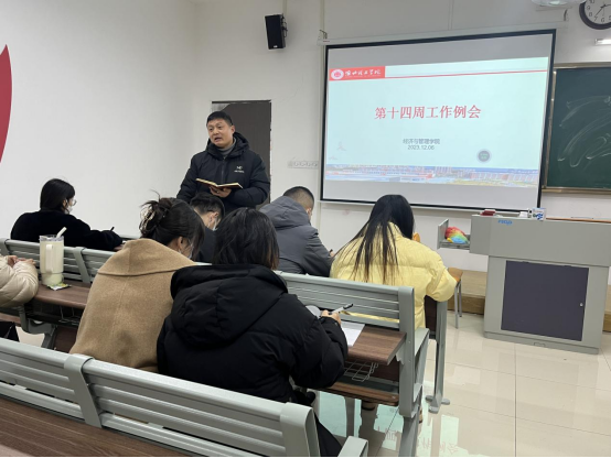 2023年12月06日,经济管理学院在一教219召开第十四周教学工作会议会议由吴玲院长主持,taptap点点官方网站全体教师参加。
