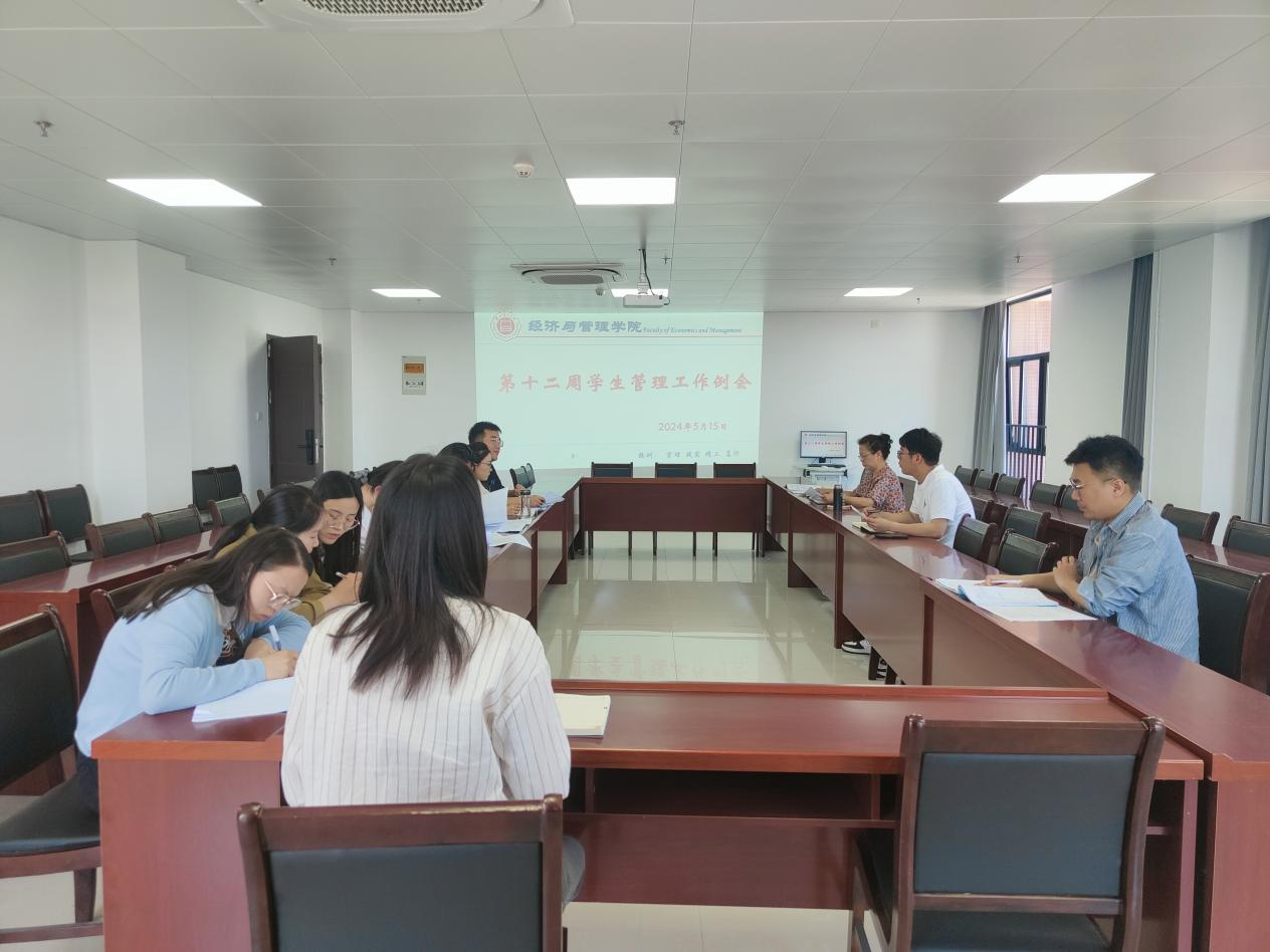 2024年5月15日,经管学院于行政楼733办公室召开辅导员工作例会,全体辅导员参加会议,会议由院长吴玲主持。