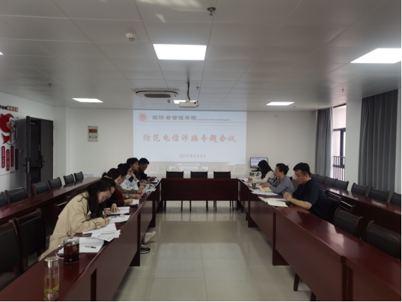 2025年4月8日,taptap点点官方网站在行政楼725会议室召开本学期第七周学生管理工作例会暨防范电信诈骗专题会议,学院书记助理员禹辛、团总支书记王绎程及全体辅导员参会,会议由院长吴玲主持。