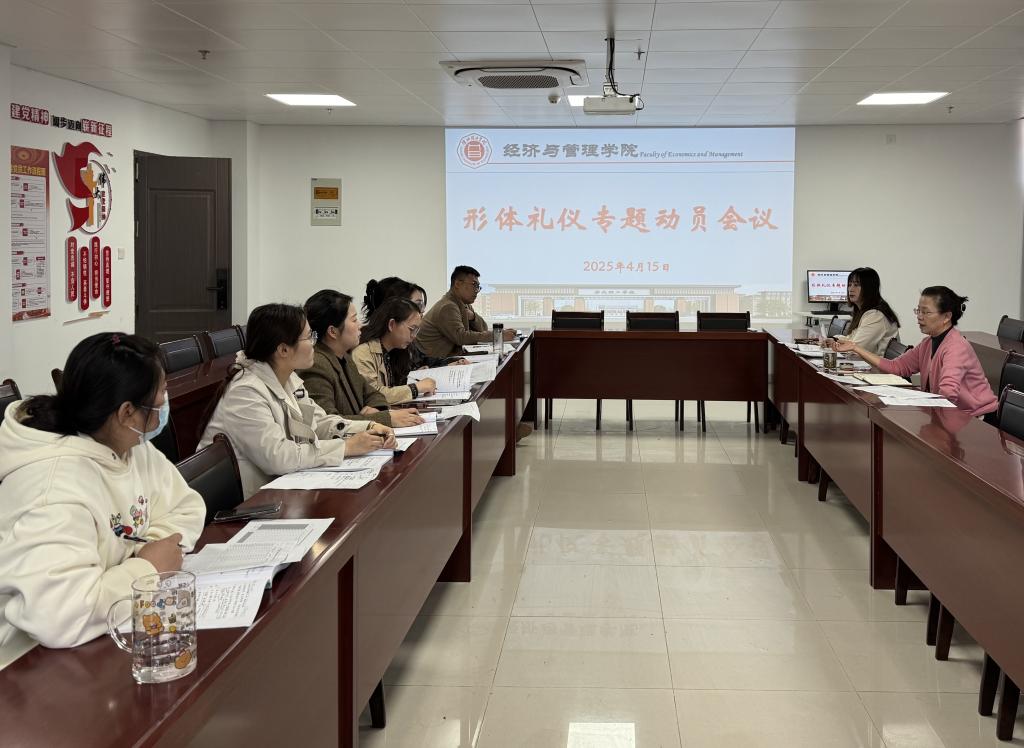 2025年4月15日,taptap点点官方网站在行政楼725会议室召开本学期第八周学生管理工作例会暨形体礼仪专题动员会议,学院书记助理员禹辛及全体辅导员参会,会议由院长吴玲主持。