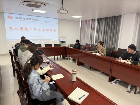 2025年4月16日,taptap点点官方网站在行政楼725召开第八周行政工作例会,院长助理张珊、叶赵强,教学秘书李健及各教研室主任出席会议,会议由院长吴玲主持。