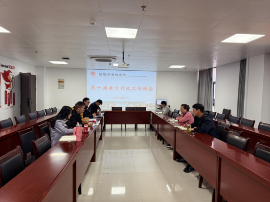 2025年11月5日上午,taptap点点官方网站于行政楼725会议室,召开学院第十周教学行政例会,院长助理张珊、叶赵强,教学秘书李健及各教研室主任参加会议,本次例会由院长吴玲主持。
