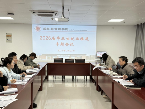 随后召开2026届毕业生就业推进工作专题会议。员禹辛通报了2025届毕业生就业率、2026届征兵入伍报名情况以及近期访企拓岗工作进展。院长吴玲在肯定2025届毕业生就业工作成效的基础上,对2026届毕业生就业工作提出进一步要求,要提前谋划、尽早行动,系统总结以往经验,做到心中有数、推进有序。积极邀请优质企业开展宣讲并提供就业指导;同时做好京东新一批实习学生的对接与后续动员,关注学生职业发展,建立长期跟踪机制。针对不同类型企业开展针对性动员,加强招聘会后的数据跟踪与统计,引导学生及时投递简历。就业工作不仅要重视“量”,更要注重“质”,切实做到“量质”并重,实现毕业生更加充分、更高质量的就业。