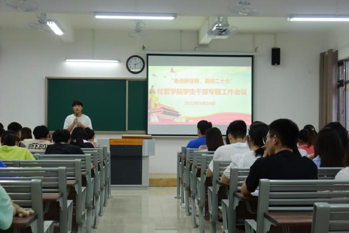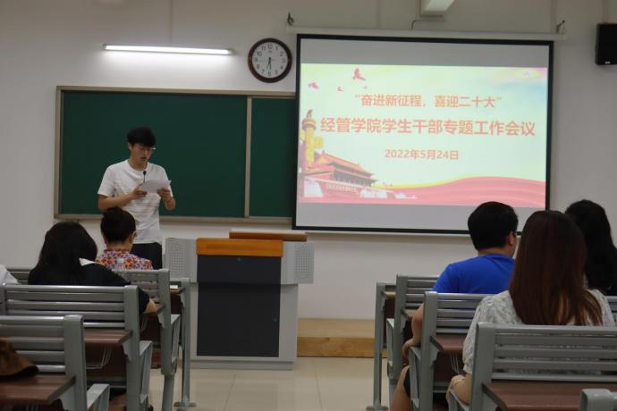 会议开始,团总支书记叶赵强老师汇报了经管学院本学年各项工作开展情况,首先他提到在过去一学年时间里,我院积极参加各项活动,特别在校辩论赛、女子篮球赛比赛中都取得了第一名的优异成绩;接着进一步阐述了作为团总支书记的职责主要是抓好团总支自身建设,加强对团学干部教育、培养与管理、监督、检查各团支部工作计划的执行情况;最后,叶赵强老师提出学生干部要加强思想教育,要求各班形成良好的班风学风;同时对学生干部寄予期望,希望各学生干部在做好带头作用的同时,坚持“以服务同学为理念”的工作思路,并表示本次专题会议的目的与重要性。