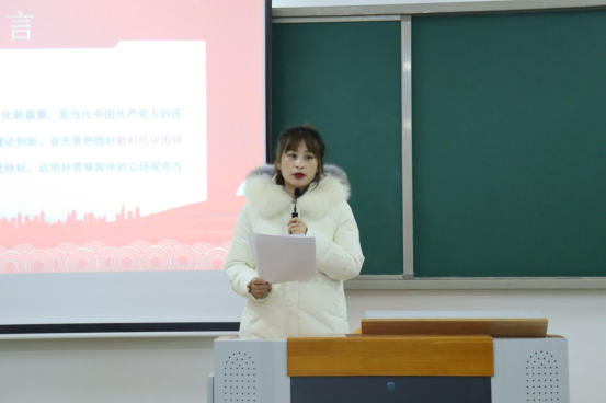 会上,经济学学生党支部书记员禹辛从习近平新时代中国特色社会主义思想世界观、方法论的实践依据、科学内涵、丰富发展三个方面展开,从党史、新中国史、改革开放史、社会主义发展史、中华民族发展史五个层面去把握,阐述新时代十年的伟大变革的里程碑意义。党的二十大报告指出:“不断谱写马克思主义中国化时代化新篇章是当代中国共产党人的庄严历史责任,继续推进实践基础上的理论创新,首先要把握好新时代中国特色社会主义思想的世界观、方法论,坚持好运用好贯穿其中的立场观点和方法。”