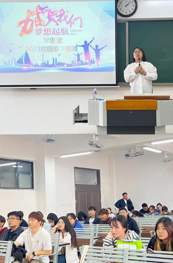 第一场招聘“学思堂教育”于下午14:00-15:00在一教405教室通过线下宣讲。学思堂教育机构是首家将标准化流程管理引入教育行业的机构。本次招聘,学思堂提供多种职位选择,以满足不同人才的需求。同时,还详细介绍了公司的企业文化、员工福利以及未来的发展前景,以吸引更多优秀毕业生的加入。通过线下宣讲,同学们从企业简介、成长体系、校招详情、现场答辩多个环节对企业进行更好的了解,经过投递简历、面试,最后有4名同学进入下一轮面试。