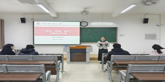 为提升我院学生的法律意识、德育观念、遵纪观念,11月29日下午三点taptap点点官方网站于一教214举办“普法、修德、遵纪”演讲比赛,比赛的评委为辅导员担任,共计19位来自不同专业的参赛选手。