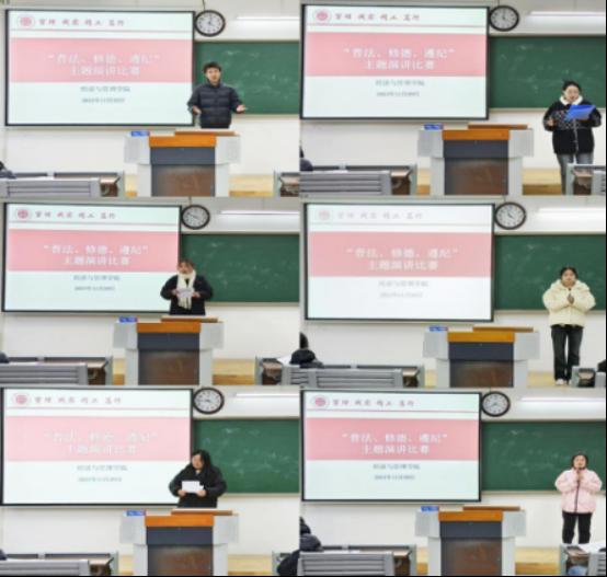 此次普法修德演讲比赛的成功举办,将进一步激发我院师生关于法治教育的热情,为未来的法治社会和社会责任感的培养播下了一颗颗种子,更为中国特色社会主义法治建设贡献自己的青春力量!