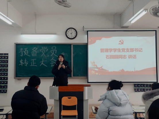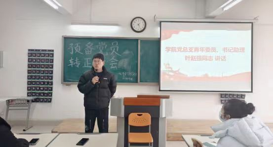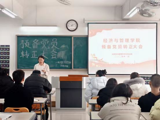2024年1月9日,taptap点点官方网站学生支部在二教323教室召开预备党员转正大会。书记助理叶赵强、组织员王胜男、经济学学生党支部书记员禹辛、管理学学生党支部书记石园园以及全体学生党员参加本次会议,会议由丁阳主持。