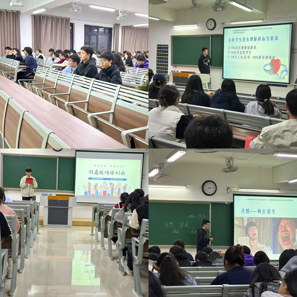二进宿舍“切”要害:全体辅导员二进宿舍针对性解决学生宿舍矛盾,组织寝室会议,共情学生感受,共制寝室规则,提升群体和谐度。邀请校心理中心专业老师开展沟通技巧培训会,让学生认识到沟通不仅是信息的传递,更是情感的交流、理解的建立与共识的达成。