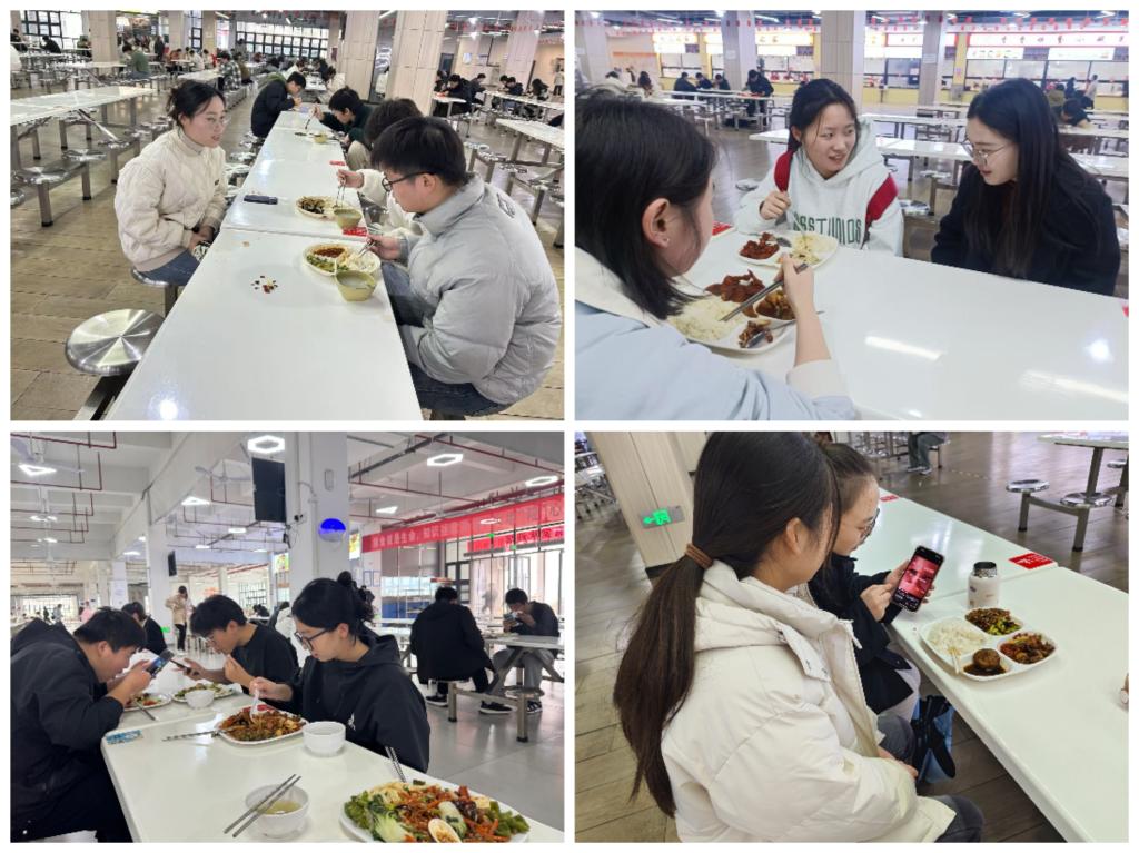 再进食堂:宣传教育,提升环保意识。针对调研发现的问题,11月14日至11月22日,辅导员们第二次进入食堂,与学生面对面交流,分享环保知识,倡导节约粮食、减少使用一次性餐具等绿色生活方式,将重点放在了环保知识的宣传和教育上,通过短视频等多种方式,向学生们生动展示了环保的重要性,以及每个人在环保行动中的不可或缺性,鼓励学生减少打包或使用自备的非一次性餐盒进行打包,以减少塑料垃圾的产生。