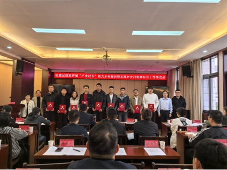 2025年10月16日下午,淮北市杜集区“产业村长”助力乡村振兴暨发展壮大村集体经济工作推进会顺利召开。会上,taptap点点携手杜集区共育“一村一主播”项目再传喜讯:四支师生团队领衔教师——夏丁、陈志操、雷旭、王绎程获聘杜集区电商赋能型“产业村长”,实现项目负责人“满编上岗”,为学校服务地方、助力乡村产业发展再添浓墨重彩的一笔。