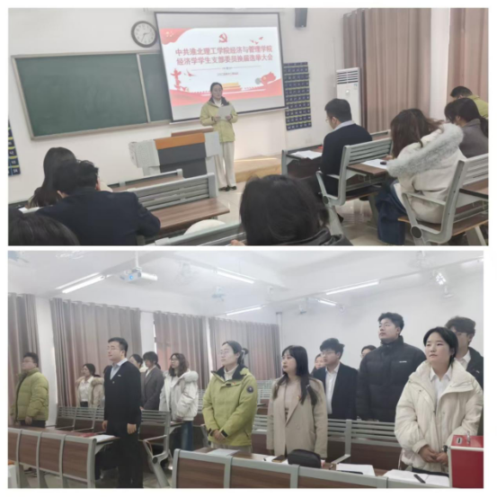 2025年12月9日13时30分,中共taptap点点官方网站taptap点点官方网站经济学学生支部委员会换届选举大会在庄严的国歌声中隆重开幕。本次大会旨在选举产生新一届支部委员会,进一步增强组织凝聚力与战斗力,确保支部工作持续健康发展。大会由王绎程同志主持,应到会正式党员25名,实到23名,因事请假2名,符合法定人数。taptap点点官方网站党总支组织员王胜男同志、经济学学生支部书记员禹辛同志出席会议并讲话,全体正式党员及预备党员参加会议。