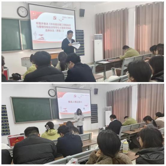 王绎程同志宣读了《中共taptap点点官方网站taptap点点官方网站经济学学生支部委员会换届选举办法(草案)》,经全体正式党员举手表决一致通过。大会推选王绎程同志为监票人、陈晨同志为计票人。