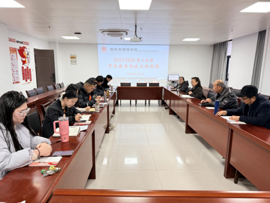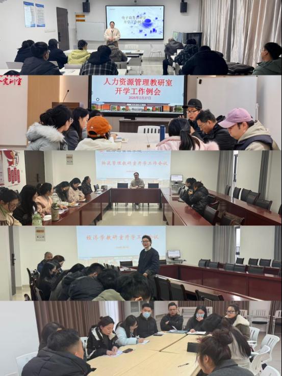 教研室研讨提质效,银龄专家强赋能。2月27日下午,学院电子商务、人力资源管理等五个教研室同步召开新学期工作会议,全体教师围绕课程大纲优化、教案精细化打磨、教学方法创新等核心议题展开研讨,全面梳理上学期教学短板弱项,共同研究改进措施和提升方案。学院特别邀请本专业银龄专家列席各教研室会议并开展针对性指导,专家结合自身丰富的教学科研经验,围绕人才培养方案优化、“开学第一课” 教学材料规范、教学科研能力提升等关键问题提出宝贵建议,为教学科研工作提质增效赋能。各教研室主任结合研讨内容和专家指导意见,对近期教学安排、教研活动开展等重点工作具体部署,明确时间节点、细化责任到人,确保教研教学任务落地见效。