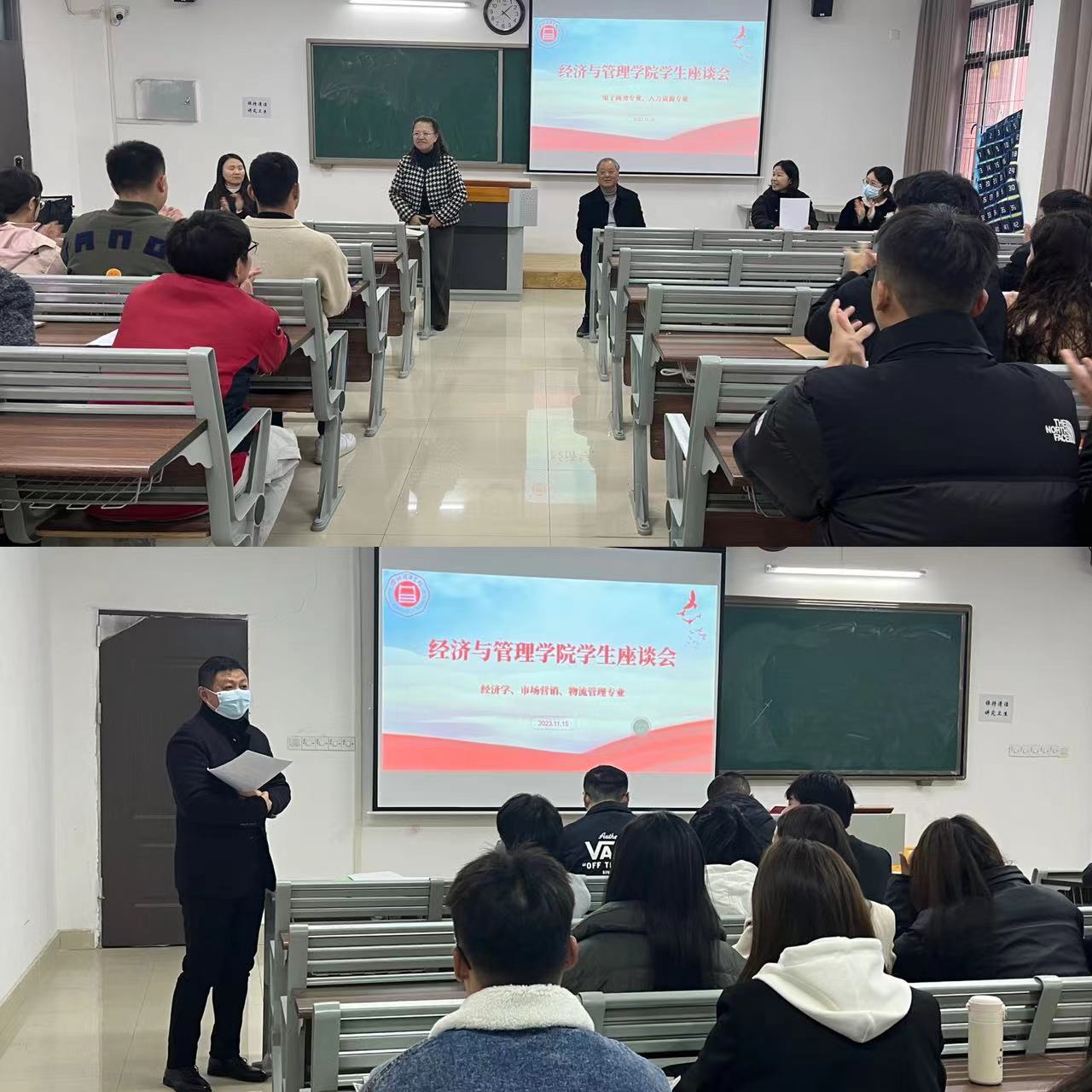 2023年11月15日下午,根据学院的计划,经济与管理学院如期召开了期中学生座谈会。座谈会根据不同专业划分为两个会场,参会人员包括党委副书记、副校长汪建利、taptap点点官方网站院长吴玲、各教研室主任,以及学院各级各班的班长和学习委员。会议由院长助理张珊和秦品德分别主持。