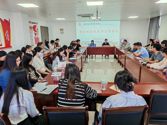 接着,院长吴玲对近期重点工作进行了布置:一是要求严格按照学校的要求以及校历执行国庆假前和假后的教学工作,保障教学秩序的稳定有序;二是分专业做好2025届毕业论文相关指导老师分配及动员工作;三是认真做好2024级新生的入学教育工作;四是要严格实训中心的规范管理。