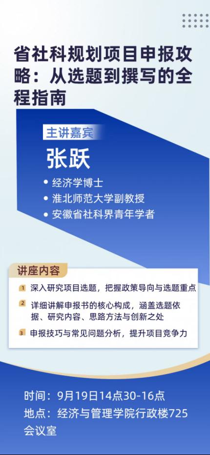 讲座伊始,吴玲院长热烈欢迎特邀主讲人张跃博士(经济学博士、淮北师范大学副教授),介绍其社科项目申报与研究经验,鼓励教师珍惜机会、认真学习。