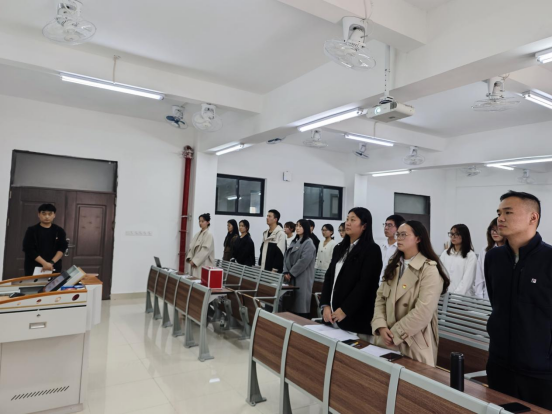 会议伊始,全体与会成员起立,奏唱中华人民共和国国歌。高昂的旋律激荡人心,标志着本次接收预备党员支部大会正式进入议程。