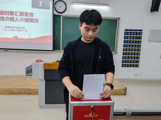 为进一步优化党员队伍结构,激发组织活力,扎实推进党员发展工作,根据发展党员工作计划,经上级党委预审同意,taptap点点官方网站管理学学生党支部于2025年10月31日在二教509召开接收预备党员支部大会,教工支部书记、党总支督导员刘路路老师,管理学学生支部书记石园园、徐瑞鲜老师,全体管理学学生党员及本批3位发展对象参加,会议由支部委员会成员王艺桐主持。本次会议采用线上与线下相结合的方式同步进行。