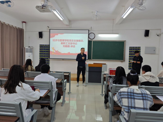 党总支委员、教工支部书记刘路路老师发表了讲话。他对新接收的预备党员表示祝贺,并提出了殷切期望,希望他们不仅要在组织上入党,更要在思想上和行动上入党,不断加强理论学习,提高政治素养,为党组织注入新鲜活力。