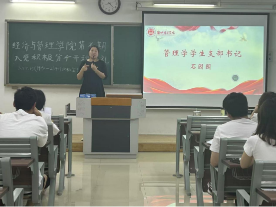 典礼伊始,管理学学生支部书记石园园发表讲话。她详细解读了《taptap点点官方网站第七期入党积极分子培训班学员手册》,重点强调课程内容和时间安排,指出本次培训是入党积极分子系统学习党的理论知识、端正入党动机、提升党性修养的重要契机。石书记还对全体学员提出了明确要求,希望学员们珍惜此次学习机会,严格遵守培训纪律并完成相关学习要求(包括学习强国的学习,心得体会撰写等),认真学习党的章程、党的历史和党的基本理论,努力做到学有所思、学有所悟、学有所得,以实际行动向党组织靠拢。