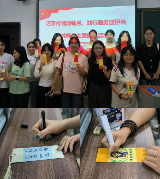 秋韵荡漾,师恩难忘。在第41个教师节来临之际,为弘扬尊师重教的传统美德,经济与管理院学生党支部于2025年9月9日至10日,成功举办了以“巧手传情颂师恩,践行服务显担当”为主题的教师节系列主题感恩活动。支部全体学生党员以实际行动向辛勤耕耘在教学、管理、服务一线的教师们表达了最深切的感激与崇高的敬意。