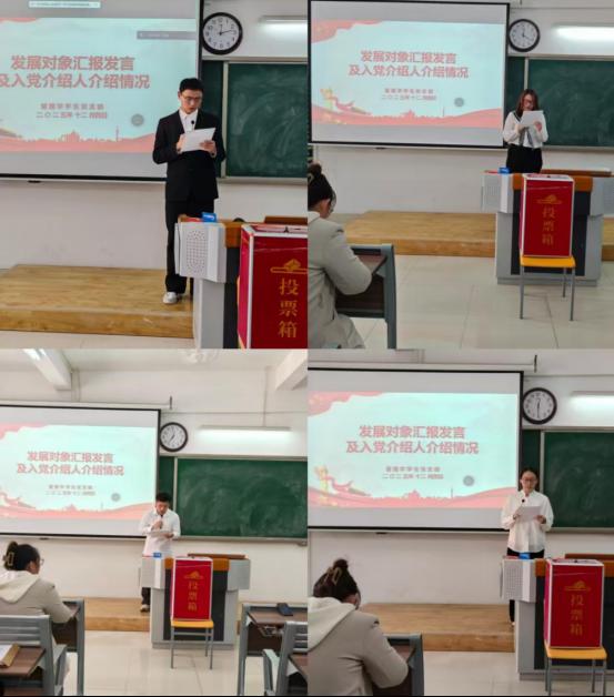 院党总支组织员王胜男、督察员刘路路分别发言,充分肯定各支部党员发展工作的规范性与严肃性,并对新党员提出殷切期望,强调要坚定理想信念、提升理论水平、积极担当作为,早日成长为合格共产党员。