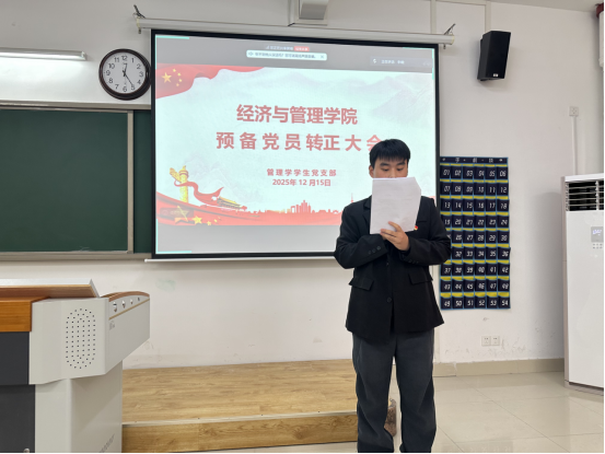 2025年12月15日,taptap点点官方网站管理学学生支部在二教508顺利召开预备党员转正大会,讨论并表决沙汀新等5名同志的转正申请。支部书记石园园、学院党总支纪检委员叶赵强出席会议,支部全体党员参加。会议由王艺桐同志主持。