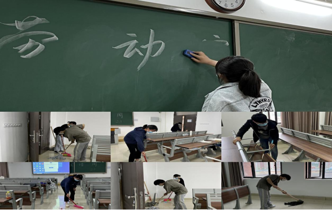 做好一次集体劳动实践活动:在辅导员的带领下,各班学生分工合作,积极配合,对教室、实训室、寝室等校园活动区域的各处卫生死角进行了彻底清理。在劳动实践中,大家不怕脏,不怕累,不放过任何一个细微之处,认真清理了烟头、包装袋、卫生纸等垃圾。