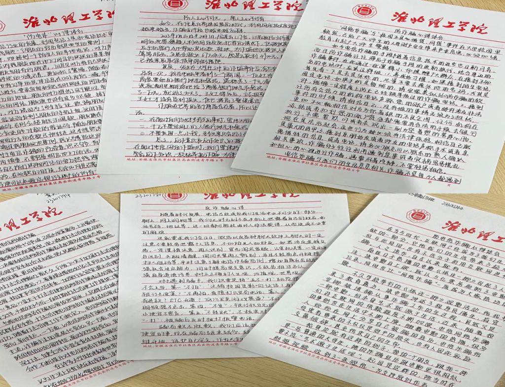 编辑一册“防电诈”心得体会集:为了进一步提高师生防范电诈的意识和能力,我院于3月19—22日展开“防电诈”心得体会写作活动,200余名同学们们结合自身经历和感受,详细的讲述自己受诈骗的过程和解决的办法,最终评出一等奖1名、二等奖2名、三等奖3名。