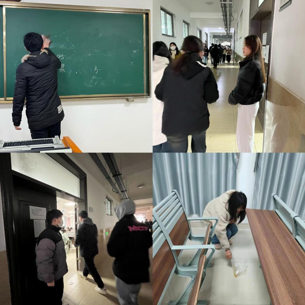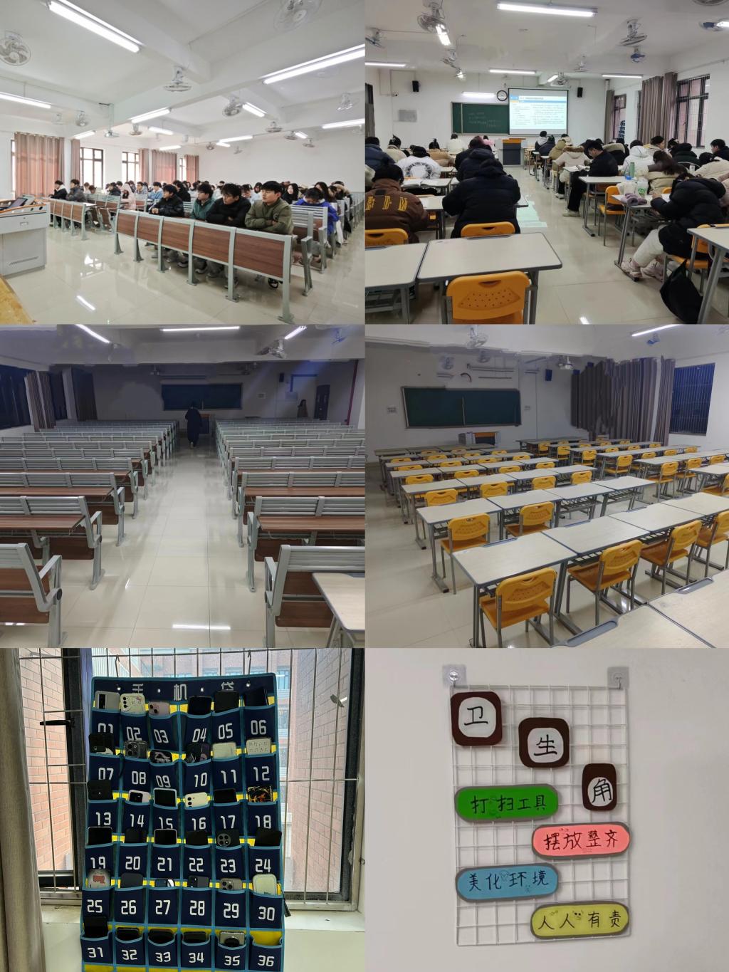 对照标准积极创建(12月15日-12月22日):针对前期发现的问题,首先各班级辅导员通过主题班会形式,增强同学们“文明教室,你我共建”的理念;其次各班级成立班委督察小组,每天早上8点前在到教室检查卫生并在教室门口督促学生不带餐进教室;各班生活委员合理安排值日小组,每天两打扫(中午11:30,晚上8:30),确保学生有个舒适的学习环境;最后由班级班委,团员、入党积极分子和党员带头上课前排就坐,并将手机放入手机袋内,以点带面提高课堂学习质量,形成班级良好的班风学风。