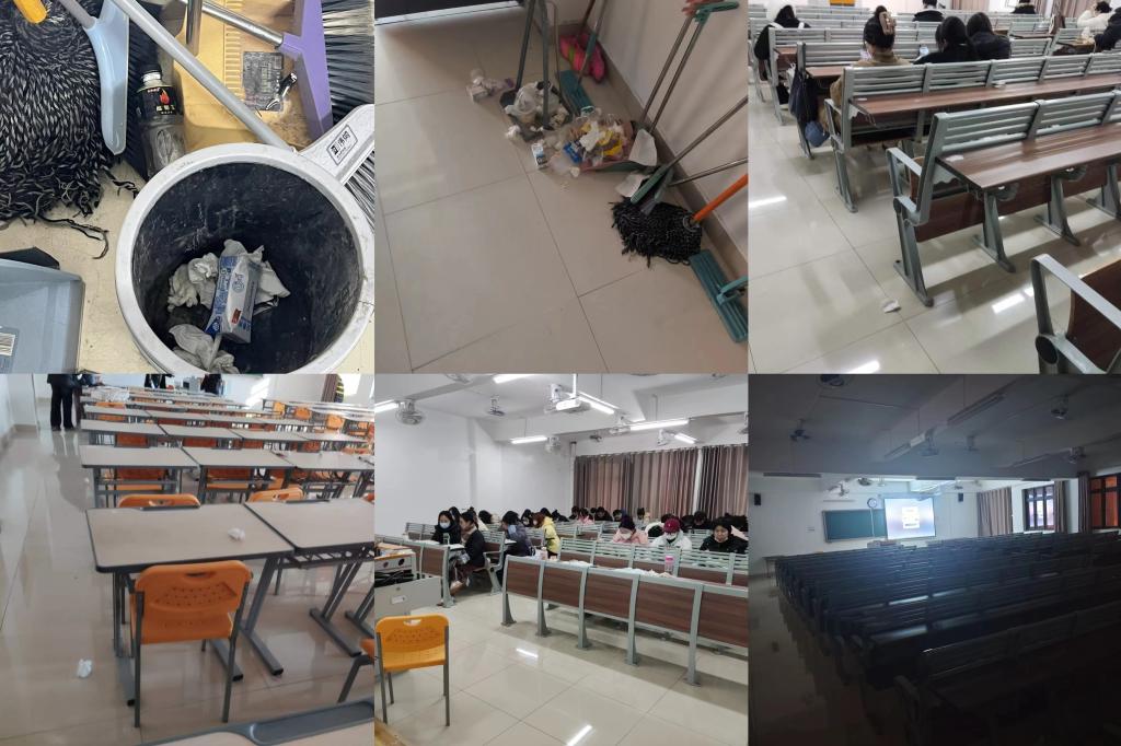 明察细看发现问题(12月11日-12月14日):学院学生会30名成员分成6组,每日两检查,周日细检查(检查时间为中午12:20和晚上9:00,检查标准为教室卫生要“净”;文明要“静”;公物要“敬”等几个方面)。对发现的问题记录在案,通过专题例会制定创建标准。