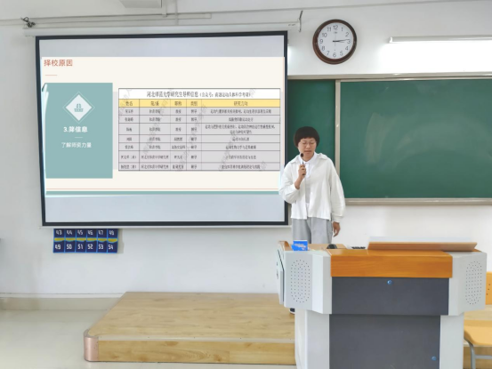 在交流会中,张子文为备考学硕的学生依次讲述自己的考研历程以及自己在考研中出现的问题,强调了选择和努力同样重要。随后,她又从数学,英语,政治,专业课等方面分享了一些自己考研过程中取得的经验。台下的学生听完后由衷的赞叹她的备考毅力,同时分享的经验也能给有意考研的学生提供借鉴。