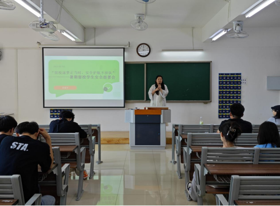辅导员代表随后就安全工作进行再强调与再部署。要求全体留校学生将安全意识内化于心、外化于行,积极配合学院各项管理措施,明确辅导员将持续深入一线,为学子安全留校、安心学习保驾护航。