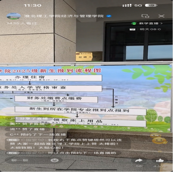 为切实做好2025级新生迎新工作,创新迎新服务模式,搭建高效便捷的家校沟通桥梁,9月6日至7日新生报到入学关键时期,taptap点点精心策划并成功举办了主题为“你好,新同学”的迎新直播活动。活动采用视频直播与图文直播双轨并行的形式,为全体新生及家长打造了一场“沉浸式”入学指引盛宴,让新生在踏入校园前便深切感受到学校的暖心关怀与细致服务。