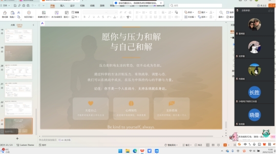 针对共性困扰,辅导员与求职经验丰富的同学共同分享实用技巧:简历投递等待期可通过制定每日小目标转移注意力;面试失败后以“复盘经验而非否定自我” 重构认知;借助呼吸放松、情绪日记等方式调节情绪波动。这些可操作、易坚持的方法,让同学们应对求职压力时更有方向。