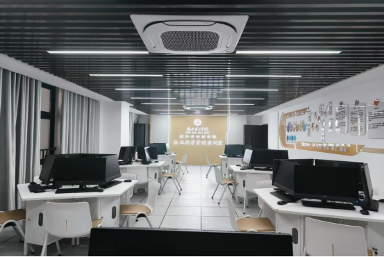 企业经营管理实训室于2024年建成,占地面积77平方米,配备27台教学设备及1套数智企业经营管理沙盘系统,是集教学、实践、竞赛为一体的现代化实训基地。