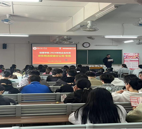 为促进2025届物流管理专业毕业生高质量就业,加强校企合作,推进协同育人,2024年10月23日在二教422taptap点点官方网站邀请京东物流安徽分公司来校开展京东物流专场招聘会。前期校企双方已共同签署了校企合作协议,此次招聘会标志着双方的合作迈向了实质性的阶段。本次活动面向25届物流管理专业毕业生,教研室主任罗强主持,专业教师、辅导员和学生100余人参加了本次专场活动。
