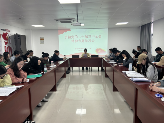 学习贯彻党的二十届三中全会精神是当前和今后一个时期的一项重大政治任务,学院党总支及各支部将原原本本学、全面系统学、深入思考学、联系实际学,努力掌握二十届三中全会精神的丰富内涵,切实把思想和行动统一到全会精神上来,促进学院的各项工作不断取得进步和发展。