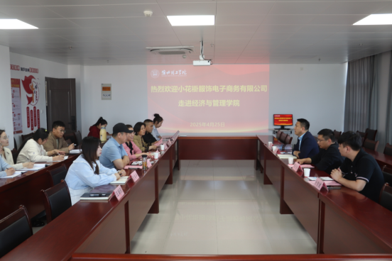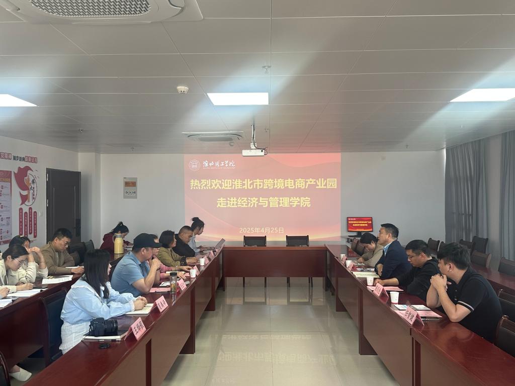 为深化校企合作,提升人才培养质量,2025年4月25日下午14:30,淮北市知名跨境电商企业走进经管学院,在行政楼725会议室开展合作交流活动。出席活动的企业有安徽小花褂服饰电子商务有限公司总经理任杰、人力资源部经理丁玉瑶,安徽朗派智能科技有限公司总经理陈天伦,淮北市跨境电商产业园运营总监任智健,院长吴玲、学院专家、相关教研室主任及毕业班辅导员参加了活动。