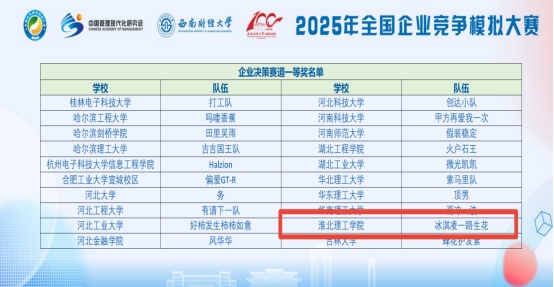 5月18日,由中国管理现代化研究会、高等学校国家级实验教学示范中心联席会经管学科组指导,中国管理现代化研究会决策模拟专业委员会主办,全国企业竞争模拟大赛组委会承办的2025年第十六届时全国企业竞争模拟大赛全国总决赛在西南财经大学落下帷幕。来自北京大学、浙江大学、武汉大学、南开大学、吉林大学和西南财经大学等高校的349支队伍晋级总决赛进行巅峰对决。我院学子在比赛中表现优异,荣获一等奖!