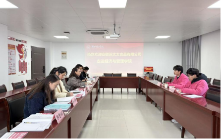 上午,校企合作洽谈会在行政楼725会议室顺利召开。安徽苏太太有限公司人力资源部负责人王晨、人事专员牟其骏,经管学院书记助理员禹辛、团总支书记王绎程以及26届毕业班辅导员参会,会议由院长吴玲主持。